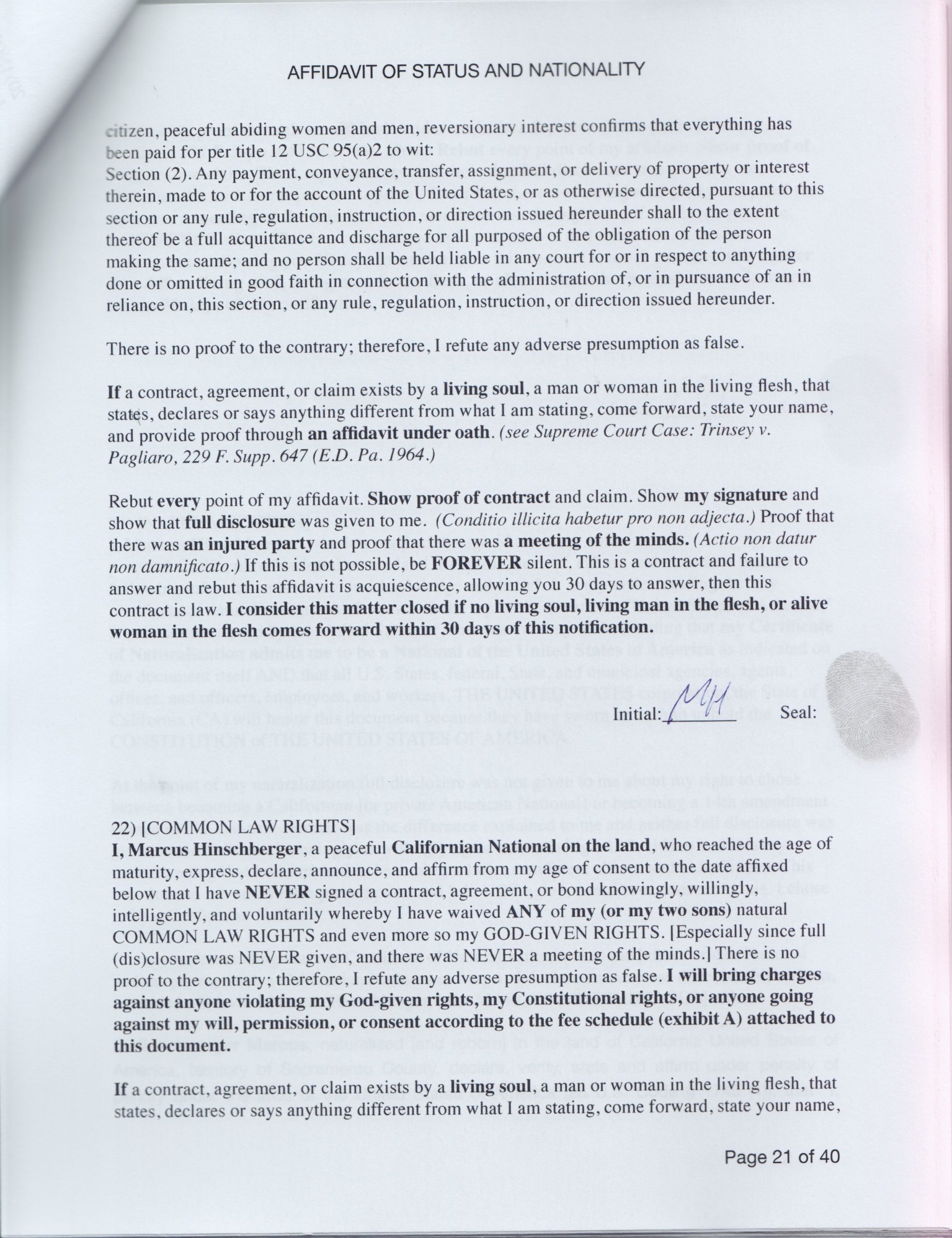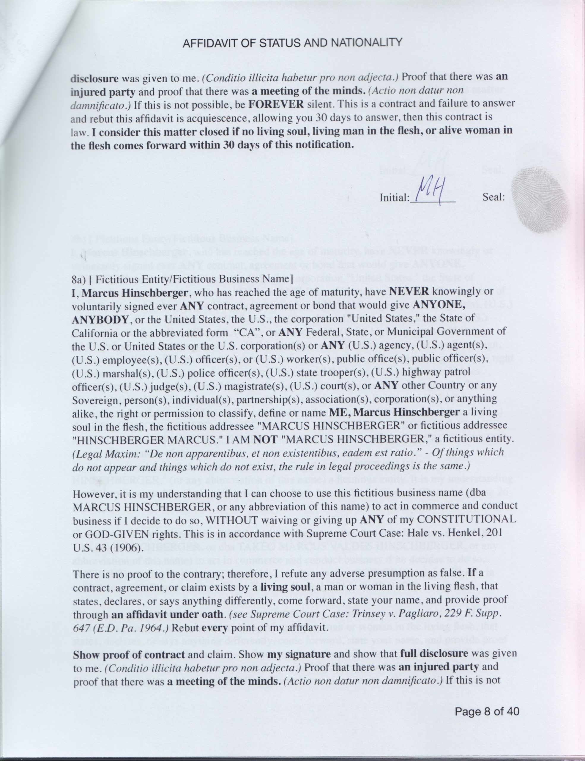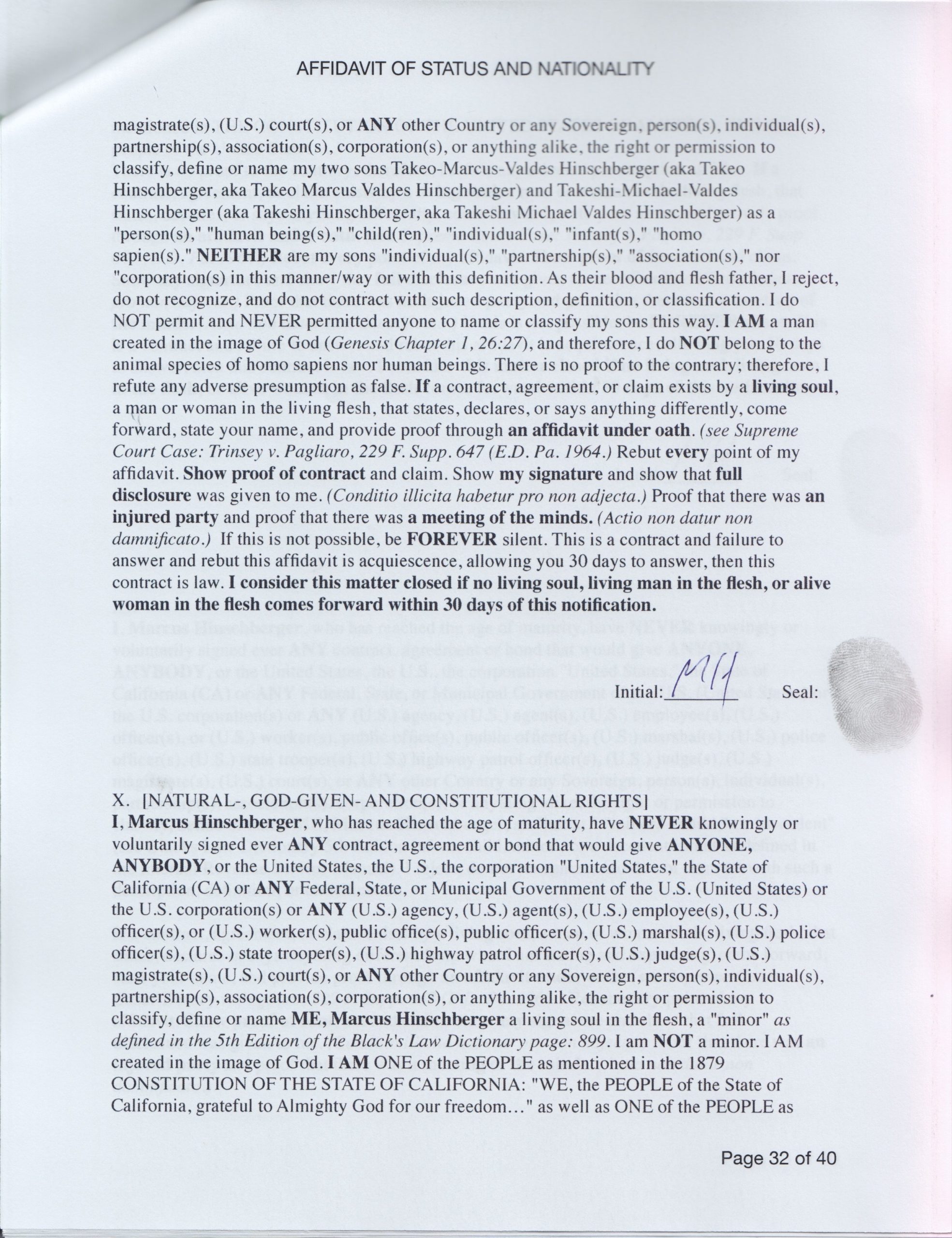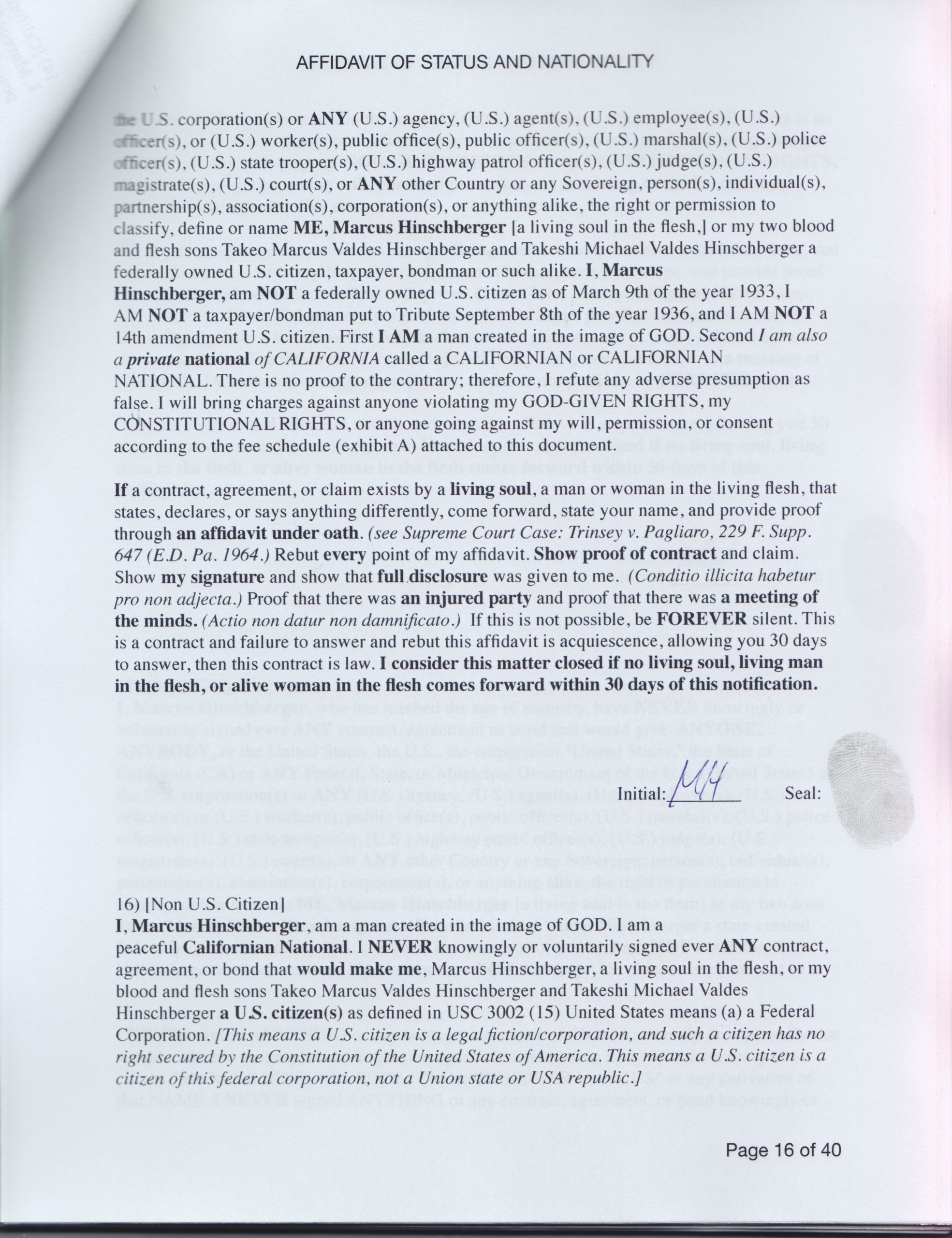 The affiant Marcus Hinschberger, a peaceful, non-combatant Californian National, publishes the following Notices and/or Affidavits on this page.