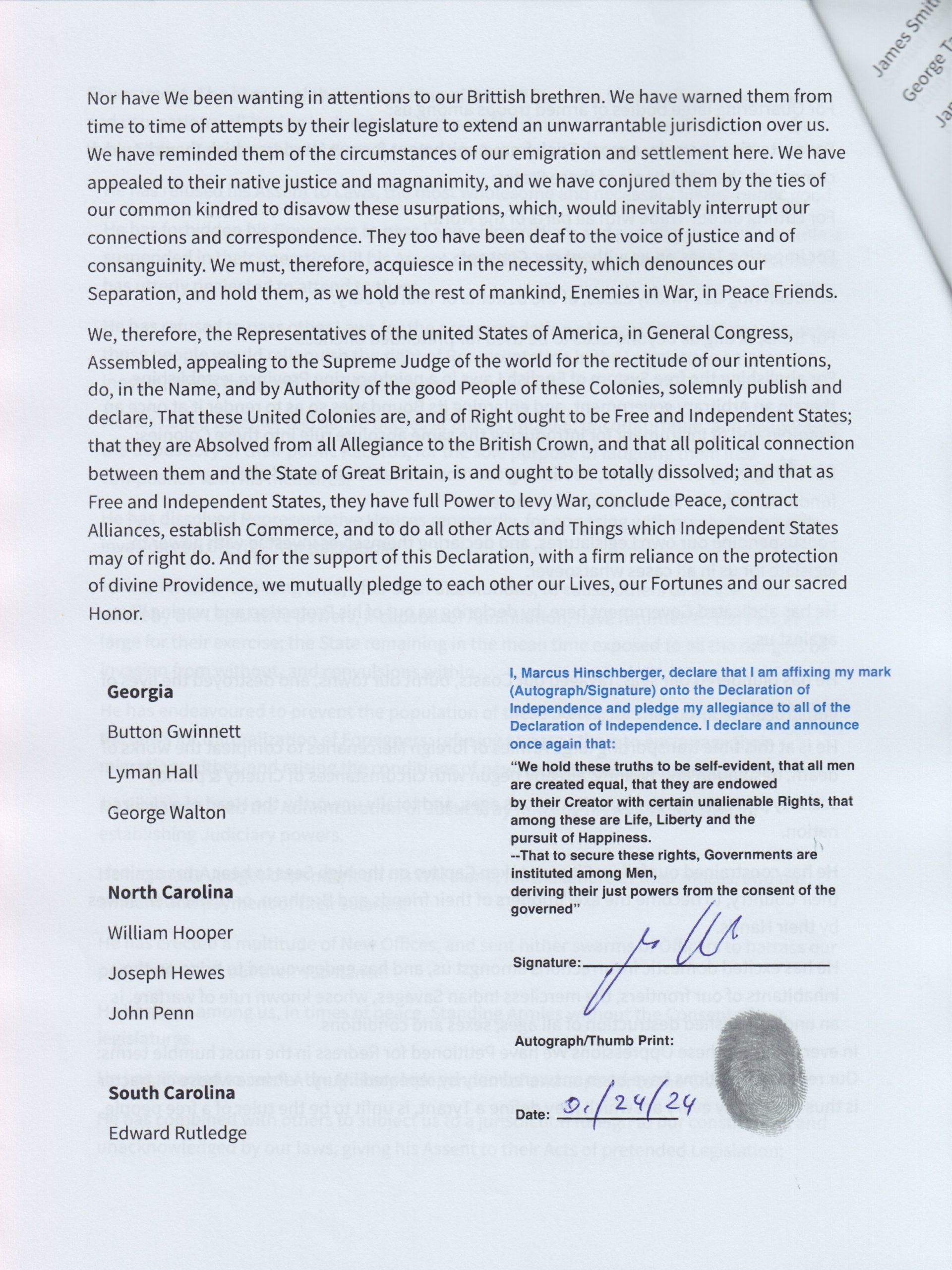 Pledge of Allegiance to the 1776 Declaration of Independence Affidavit