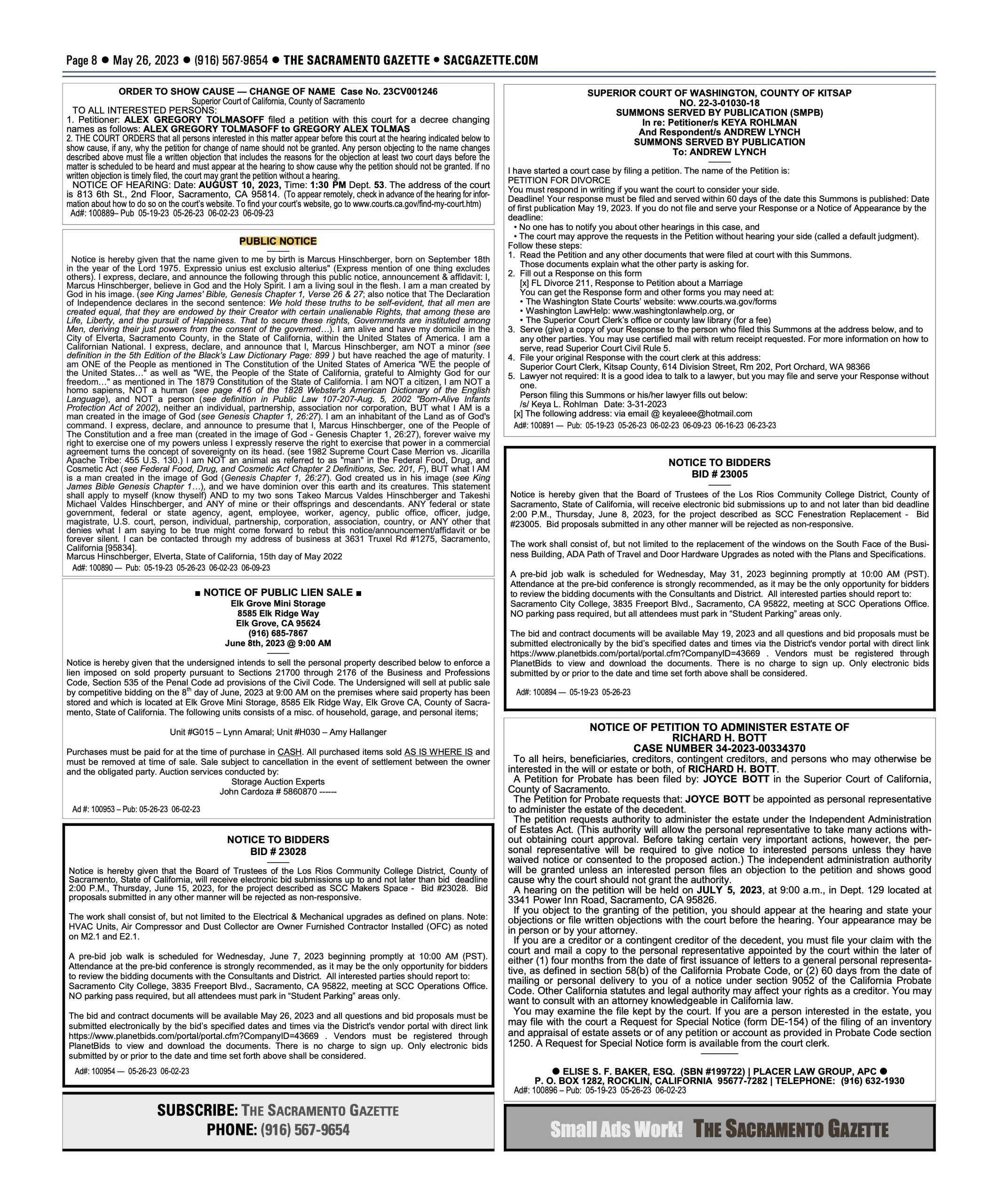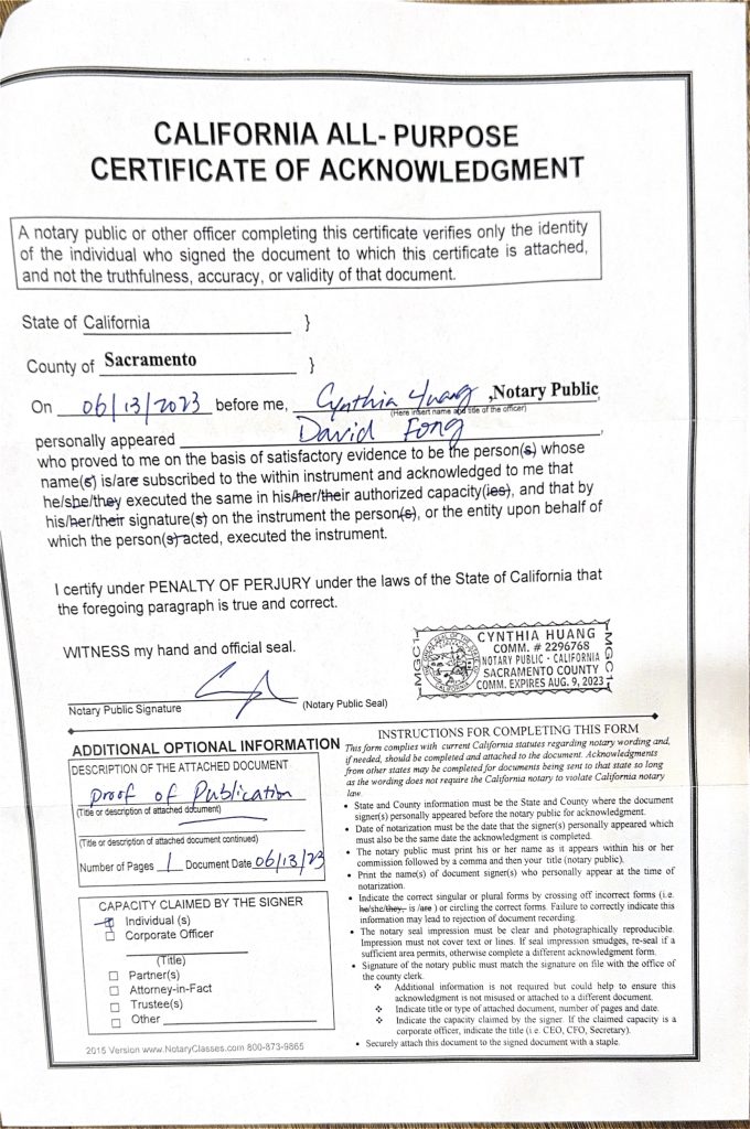 This notice was published in the Sacramento Gazette: Ad#: 100890 — Pub: 05-19-23 05-26-23 06-02-23 06-09-23